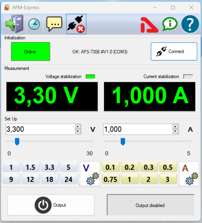 Software Aktakom Power Manager Express software allows users to remotely control their AKTAKOM power supply via PC. It features Measure, Set Up and Initialization functions, as well as, automatic switching off of the outputs of the device at the end of the program. The program follows basic configurations and some features of operation as the device control panel. This program makes it quick and easy to control your device with memory settings, preset features, and even voice guidance. Voice guidance works in all languages installed in the operating system installed on your PC.