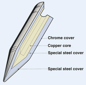 Soldering tips are made of oxygen-free copper with the steel center and nickel-chromic external covering, the correct use secures a long service life. The long exploitation term of the tips is gained due to their multilayer structure in which the external layer (chrome) is protective, internal (copper) is responsible for heat conductivity, intermediate (steel) - for durability and long operating life. And a working part (tin) - for good solder wettability.